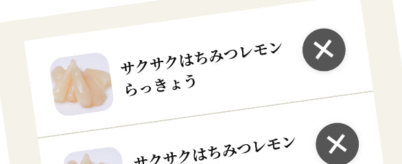 「あなたが選んだつけもの」に商品が追加されます。変更する場合は、商品の右にある「×」をタップして削除して選び直してください。